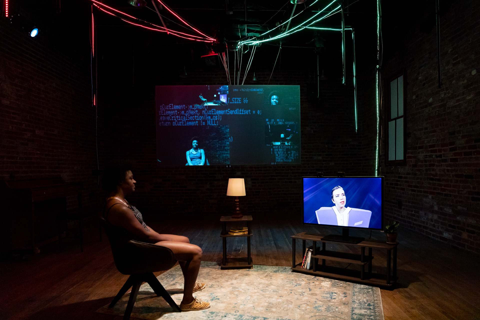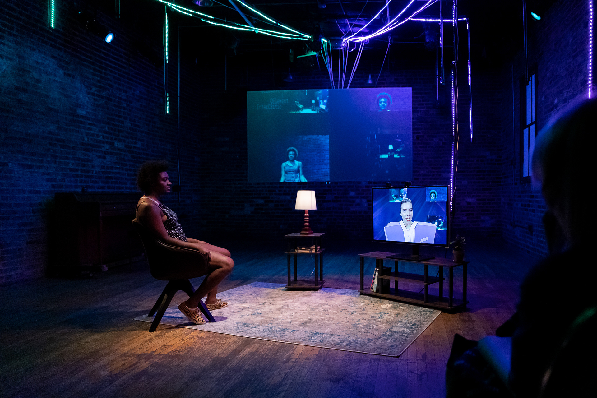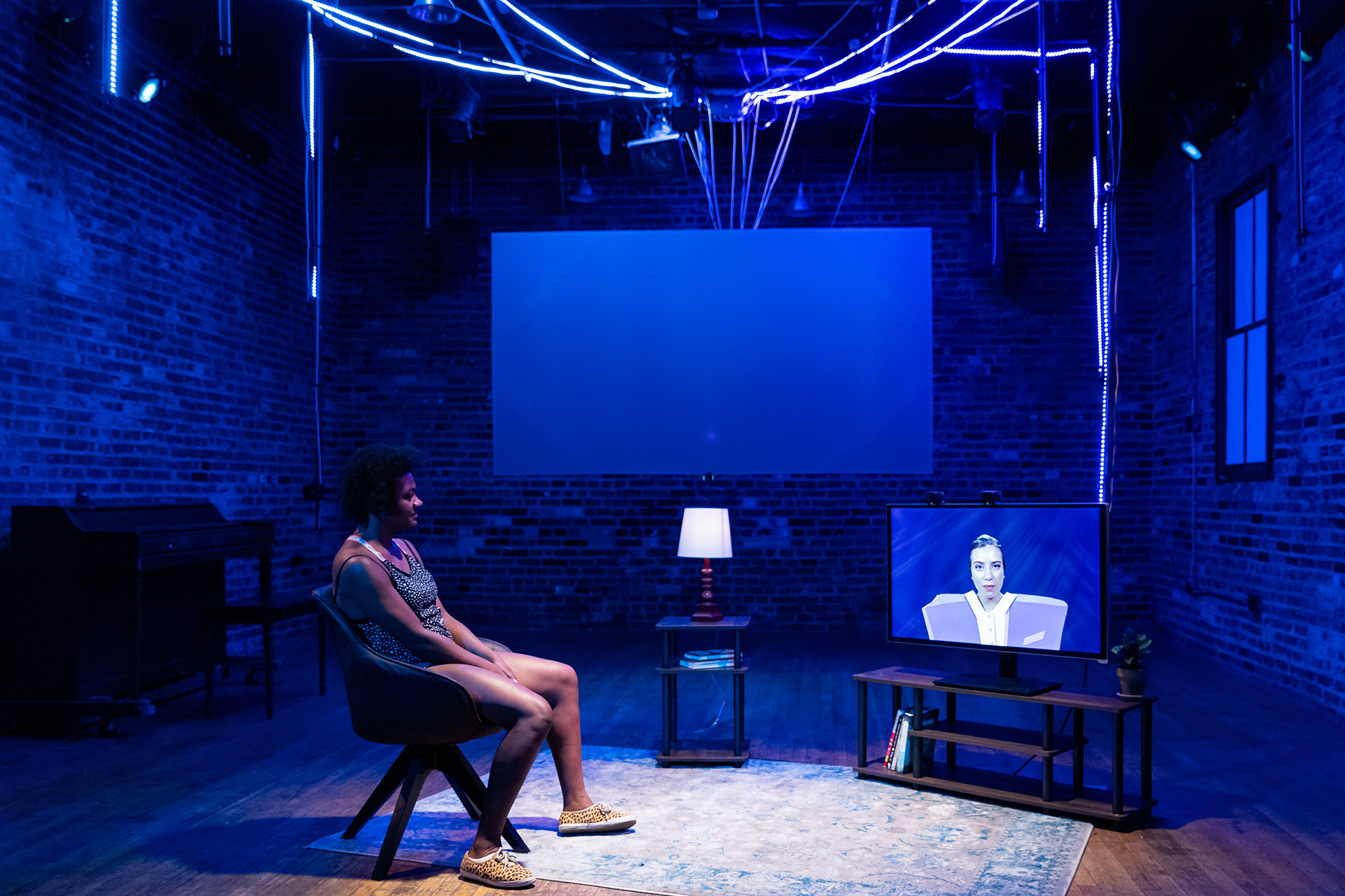 Summer 2021, Meta-Phys. Ed at the Brick Theater. Dir: Jesse Freedman; Performer: Sophie Zmorrod Laruelle; Video: Lacey Erb; Set: Kyu Shin; Costumes: Karen Boyer; Sound: Eamon Goodman; Stage Management: Lenyn Hernandez. Production Photography by Youn Jung Kim.