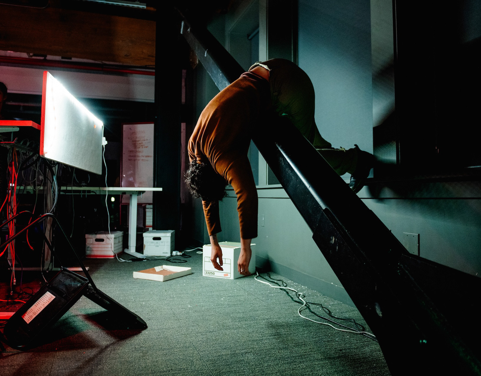 An immersive piece with the audience seated at cafeteria tables in the center, Under God's Tongue used actor-manipulated lighting, both due to the nature of the space as well as to meet the reality the characters lived in. Under God's Tongue questions who counts as family, and what really happens when you're in a cult.